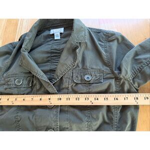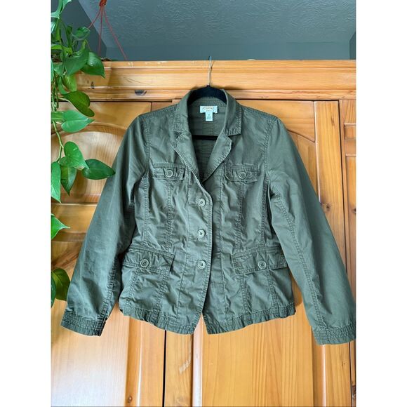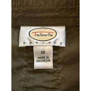 Talbots Petites 10P Olive Green Cotton Utility Jacket Safari Style Casual Blazer