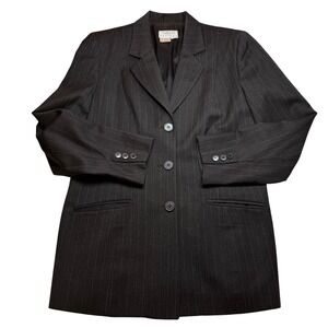 Talbots Petites 12P Brown Pinstripe Wool Blend Blazer Jacket Career Vintage