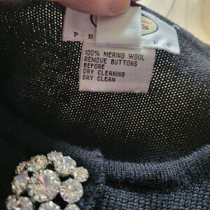 Talbots Petites Black Cardigan 100% Merino Wool W/Rhinestone Buttons Womens M