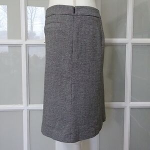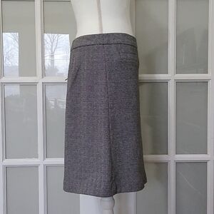 Talbots herringbone stretch skirt is a great work skirt. Faux front pockets; hidden side seam zipper with hook and eye closure.