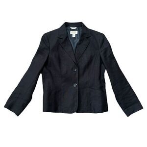 Talbots Petites Black 100% Linen Single Breasted Blazer Size 6