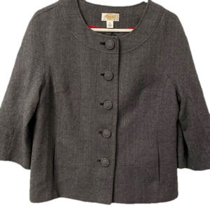 Talbots Petites Blazer Grey Tweed Cape 70% Wool 30% Viscose Size 12 Missing Belt