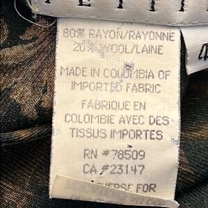 Gorgeous vintage-inspired Talbots Petites blouse in size 4P. This standout piece features a rich dark green background adorned with romantic red roses and elegant gold scrolling throughout. Made from a soft, lightweight rayon and wool blend for comfort and sophistication. Perfect for fall or winter styling with skirts, trousers, or denim.