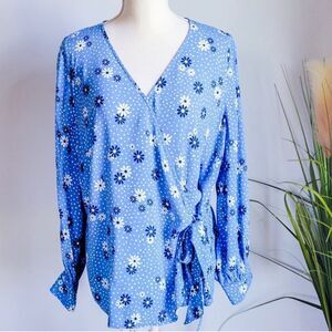 Talbots Petites Blue Flora Wrap Blouse Poet Sleeve V-Neck Flowers & Dots Size LP