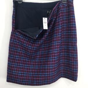 Talbots Petites Blue Pink Plaid Wool Blend Scalloped Edge Button Mini Skirt NEW