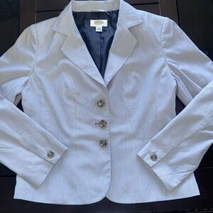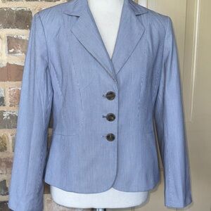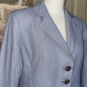 Talbots Petites Blue Preppy Pinstripe Fitted Blazer Jacket Italian Woven Cotton
