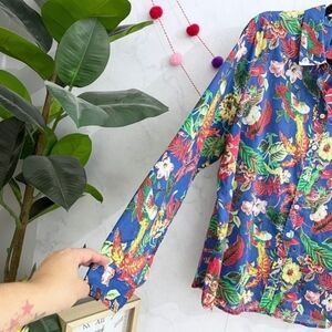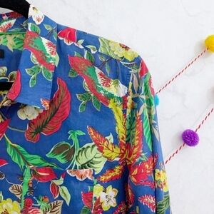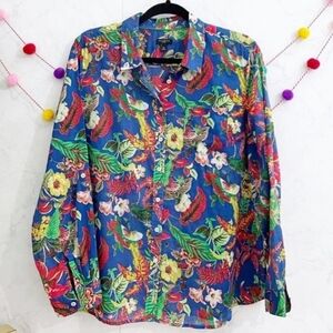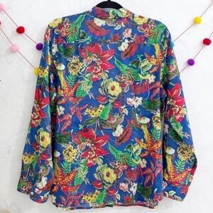 Talbots Petites Blue Tropical Floral Button Shirt Women's Medium Petite MP EUC