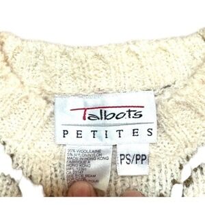 Talbots Petites Christmas Tree Sweater Holiday Knit Cream Wool Blend PS