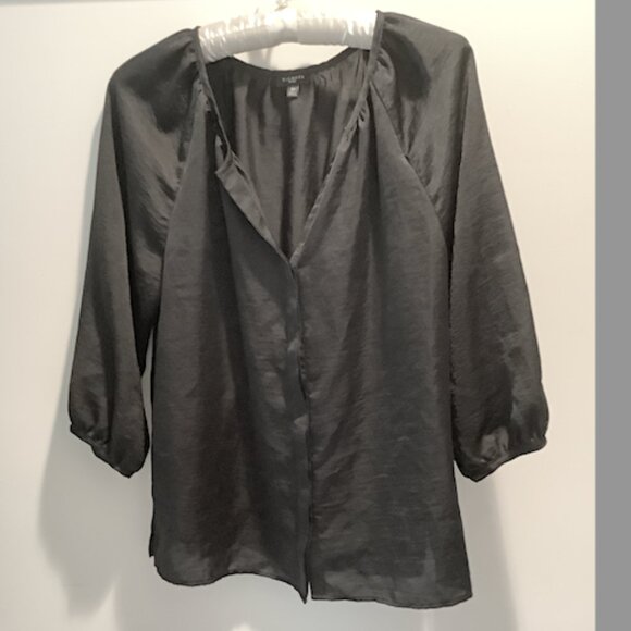 Talbots Petites - Classic Black Blouse, 3/4 sleeve, Size 12P, 100% Polyester