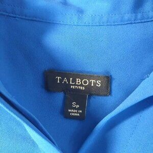 Brighten your wardrobe with this bold cobalt blue sleeveless top from Talbots Petites, size SP (Small Petite). Features a flattering high-low hem, hidden button placket, and dual flap chest pockets for a clean and classic look. Lightweight and easy to care for with a soft drapey feel, making it perfect for office wear, weekend brunch, or layering under cardigans. 100% polyester.