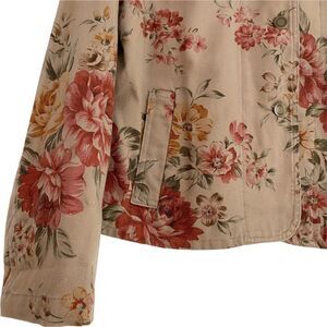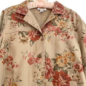 Talbots Petites Cottagecore Floral Khaki + Rust Denim Style Jacket Country Chic