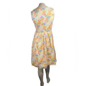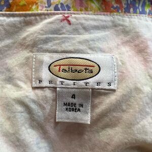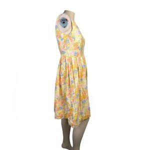 Lightweight and timeless, this sleeveless floral dress by Talbots Petites is the perfect pick for warm fall afternoons in Florida. Made from 100% cotton inside and out, it features a flattering V-neckline, a gathered waist, and a vibrant all-over floral print in pastel orange, pink, blue, and yellow tones. A breezy, cheerful piece ideal for casual outings, brunches, or late-season events.