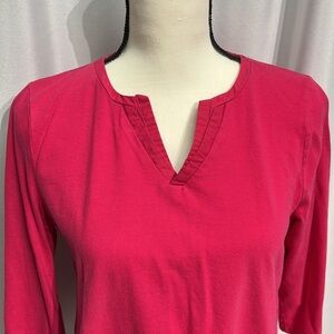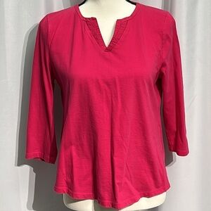 Talbots Petites Fuchsia Split Neck 3/4 Sleeve Shirt - medium petite