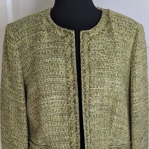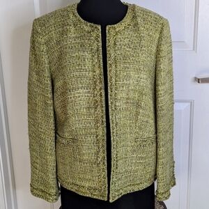Talbots Petites Green Tweed Fully Lined Round Neck Long Sleeve Blazer Size 12.