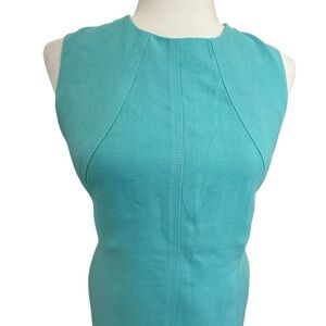Talbots Petites Irish Linen Aqua Blue Sheath Dress 2P Sleeveless Lined