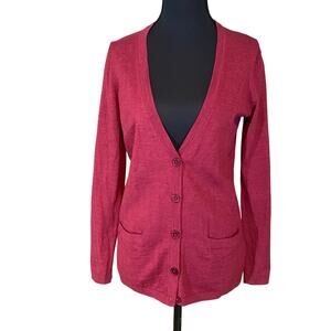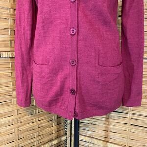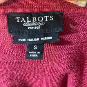 Talbots Petites Italian Merino Wool Cardigan Sweater Burgundy Small