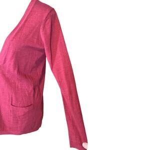 Classic Talbots cardigan in soft pure Italian merino wool. Features a deep V-neckline, button front closure, and two front pockets. Beautiful burgundy color, lightweight yet warm. Timeless layering piece for office, casual, or seasonal wear.
