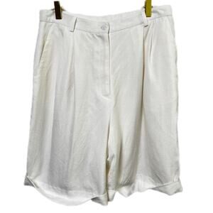 Talbots Petites Ivory Pleated Front Linen Blend Shorts/14P
