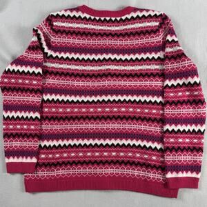 Talbots lambswool-blend Fair Isle cardigan featuring vibrant stripes in pink, black, navy, and white. Button front design with matching pink buttons, plus an extra replacement button included. Soft, warm, and perfect for the holiday season, winter layering, or classic Talbots style. Made with a luxurious blend of 70% nylon / 30% lambswool for comfort and warmth. Pre-owned- This item has been gently worn and is in nice condition. Minor wash wear consistent with age. No rips, no tears, no stains. Refer to images for condition. Due to light and screen difference, the color may be slightly different from the picture.