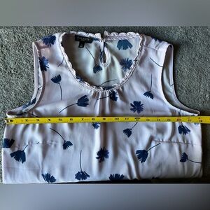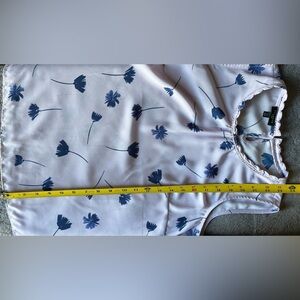Lightweight sleeveless shell, pale purple with blue floral pattern