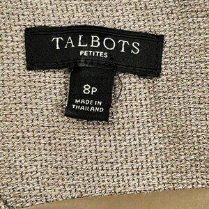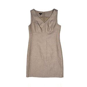 Talbots Petites Linen Gold Tan V-Neck Sheath Midi Dress Size 8P - NWOT
