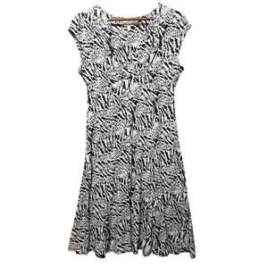 Elegant Talbots Petites Medium Petite dress featuring a bold black and white abstract brushstroke print.
