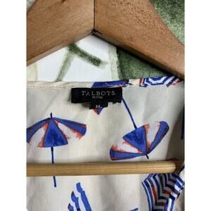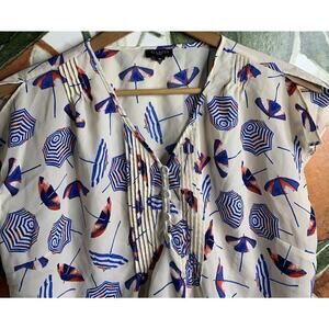 Talbots Petites MP Sleeveless Summer Umbrella Print Semi Sheer Blouse Pleated