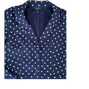Talbots Petites Navy Blue Knit Blazer Polka Dot P