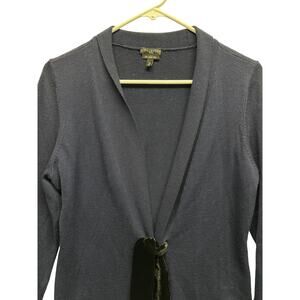 Talbots Petites Navy Merino Wool Cardigan with Velvet Tie Belt MP