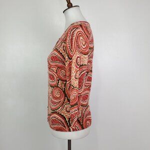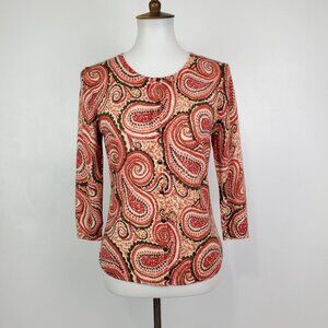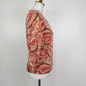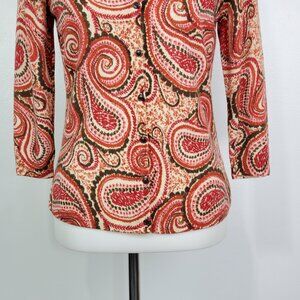 Talbots Petites Pure Merino Wool Paisley 3/4 Sleeve Career Cardigan Size SP