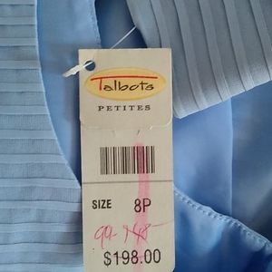 Two Piece Talbot's Pure Silk Powder Blue dress Set SZ 8P. New with Tags. Beautifully lined.