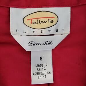 Talbots Petites Pure Silk Red Fitted 5 Button Blouse Women's Size 8