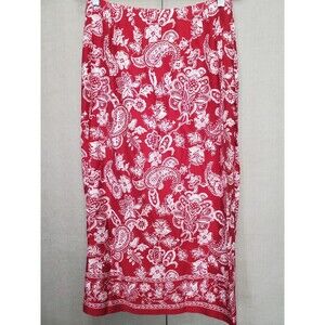 This is a Talbots Petites Rayon Red Floral True Wrap Maxi Skirt Size 8P Vintage