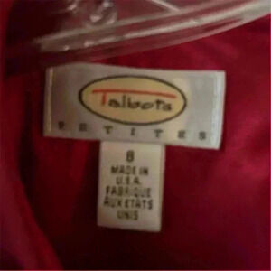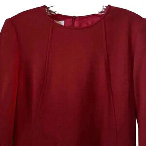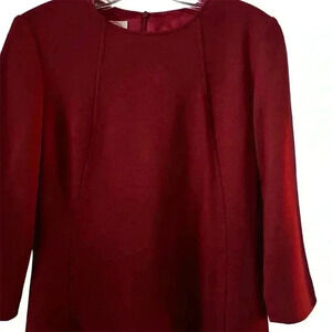Keywords: Talbots Petites, size 8, knee-length dress, red dress, elegant, sophisticated, 3/4 sleeve, round neck, fall fashion, formal wear, professional attire, fully lined, back zipper, wool dress, acetate lining.