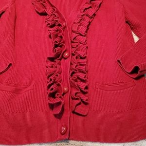 Talbots Petites Red VNeck Ruffle Front Button Up Cardigan Size MP Bust 32 Inches