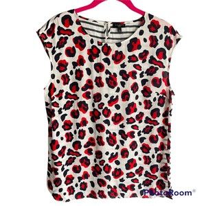 Talbots Petites Red and Navy Striped and Animal Print Career Blouse, PM