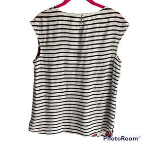 Talbots Petites Red and Navy Striped and Animal Print Blouse