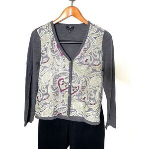 Talbots Petites S P Gray Silk Wool Cardigan Sweater Paisley S Small Petite