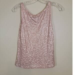 Talbots Petites Sequin Tank Top Scoop Neck Lined Sleeveless Pullover Pink Small