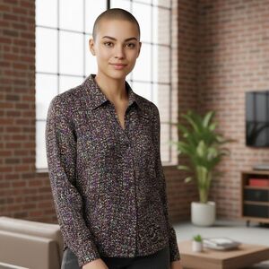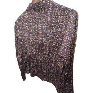 Beautiful Talbots Petites 100% Silk blouse Size 8P. Features a multicolor abstract print in purple, red, green, and yellow . Classic button-down front with collared neckline, lightweight and breathable silk, long sleeves, and a timeless fit. Perfect for office, casual, or layering .