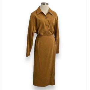 Talbots Petites Faux Suede Button Down Shirt and M Matching Wrap Skirt