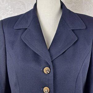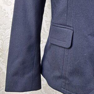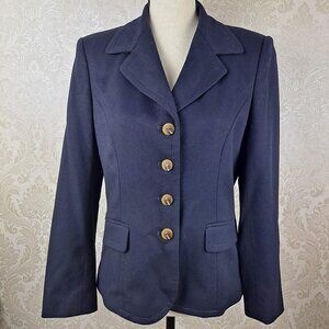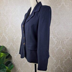 Talbots Petites Size 8P Navy Blue Blazer Wool 4 Button Front Closure Long Sleeve