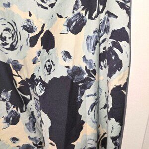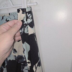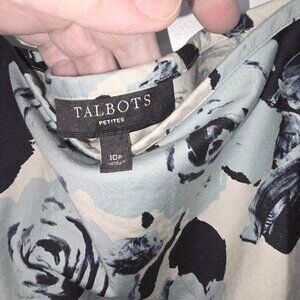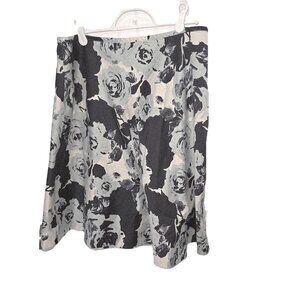 Talbots Petites Skirt Cream Black Light Blue Floral Size 10p Side Zip
