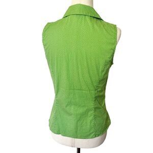 Talbots Petites Sleeveless Faux Wrap Style Blouse 6P Green White Polka Dots