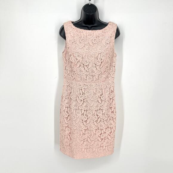 Talbots Petites Sleeveless Floral Crochet Lace Dress Womens Sz 8P Pink Lined