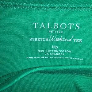 Talbots Petites Stretch Weekend Tee green sz MP bateau neckline cotton blend