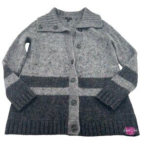 Talbots Petites Sweater Cardigan size Lp Heather Gray Acrylic Wool Soft