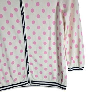 Talbots Petites Sweater Womens Medium Petite Pink Polka Dot Cardigan Navy Trim