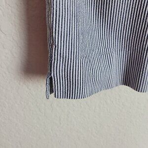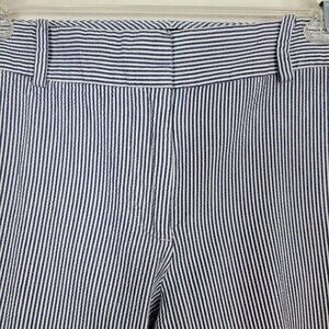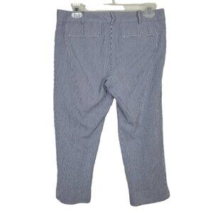Talbots Petites Sz 6P Seersucker Capri Pants Blue & White Striped 8.5" Rise 1 small light spot on bottom of left leg...see last pic