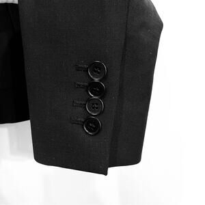 • Beautiful black suit jacket with a single-button front closure and notched collar